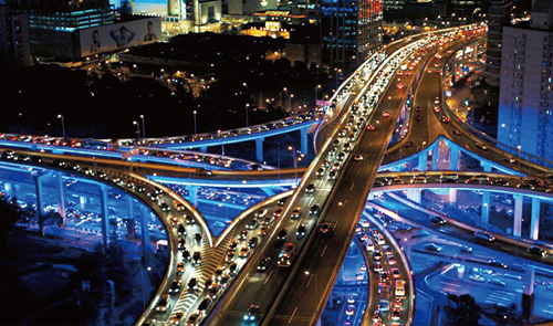 上海延安路高架是上海著名的重要公路。其景觀照明工程長度17公里,于2010年初完成。道路的 主要結構是藍色,采用洗滌燈,鼎暉HR511光源。所有的燈都不會閃爍,因為它們是用恒流電源 驅動的。這些年這個更新項目幫助政府節省了巨大的電力。